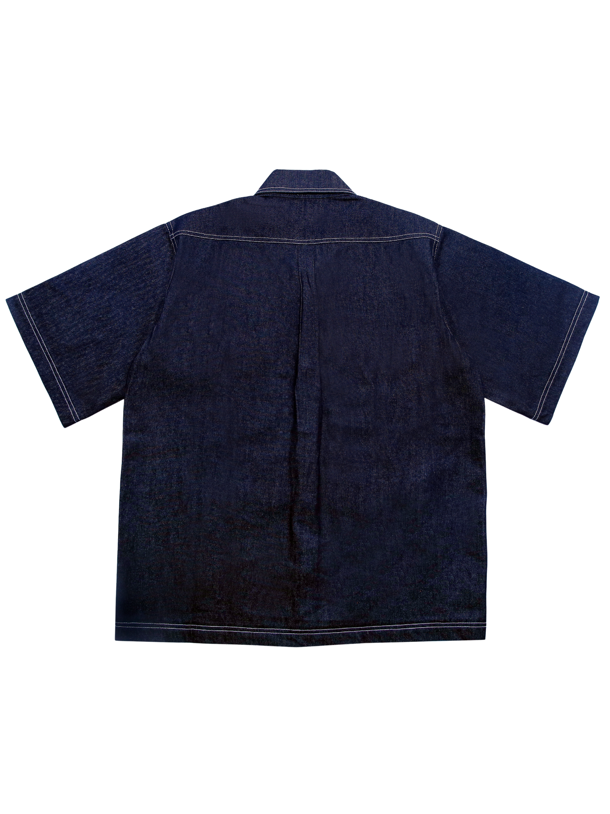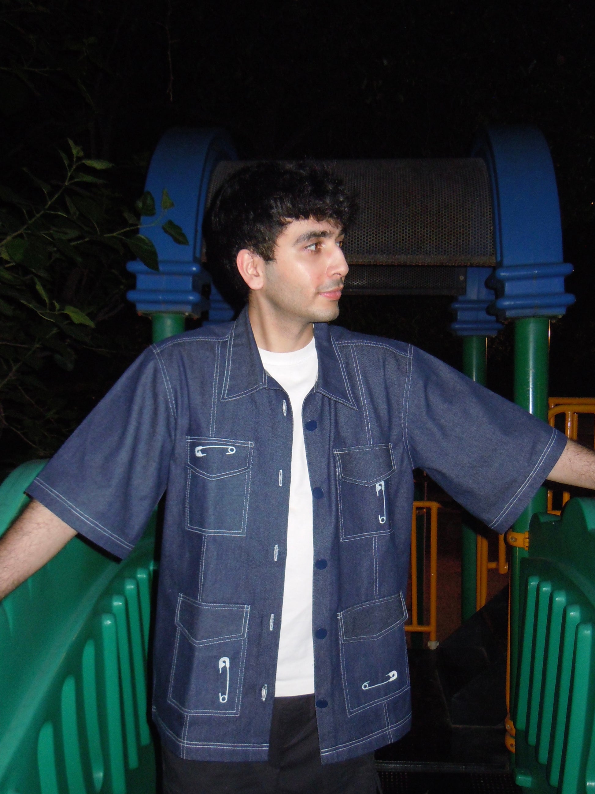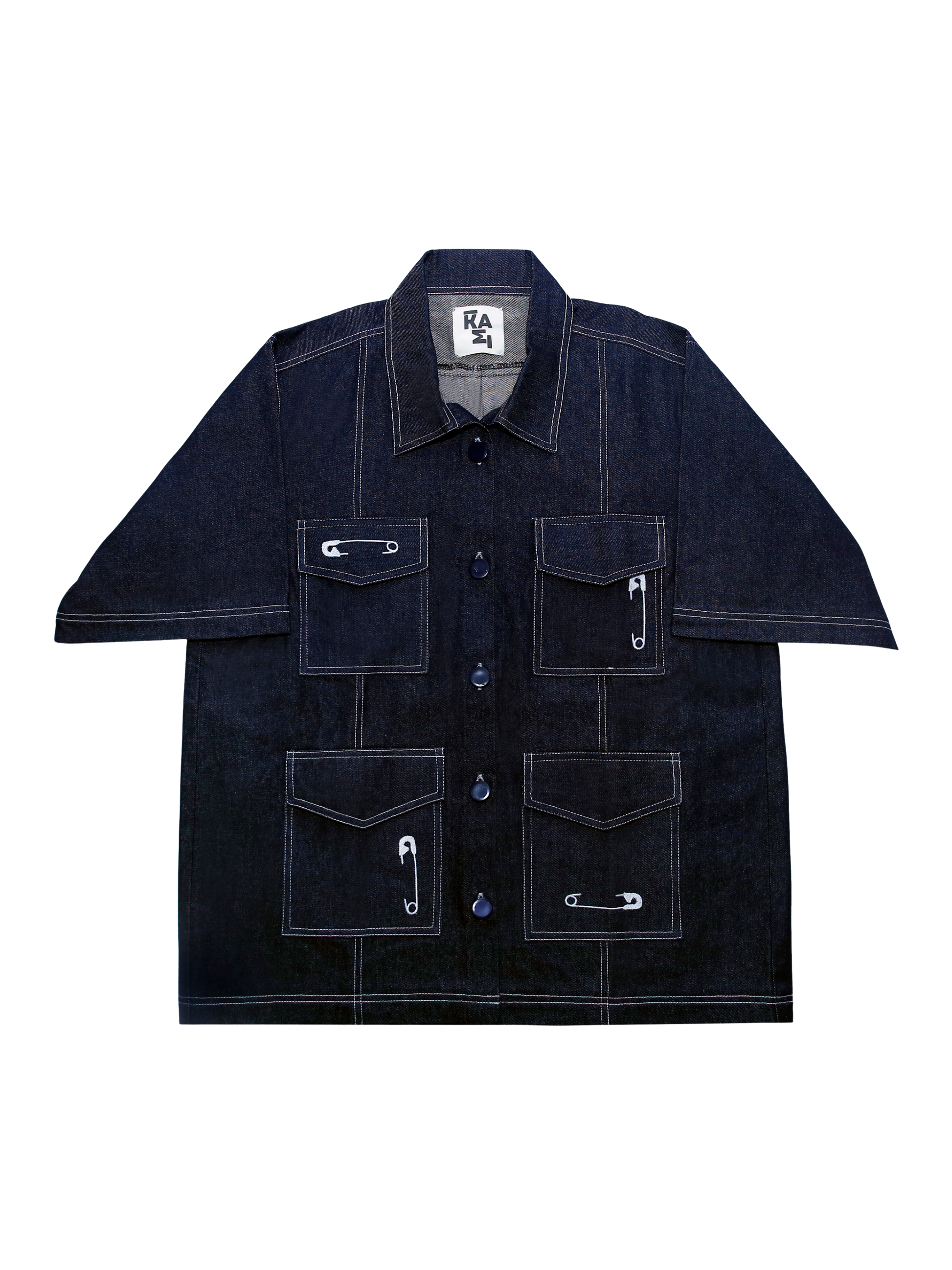 pinned in all the right ways. well oversized, dark denim shirt that’s structured, striking, and impossible to ignore.